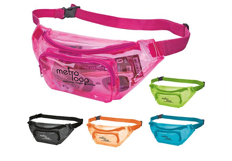 Bolso de cintura de PVC transparente con doble bolsillo y diseño colorido