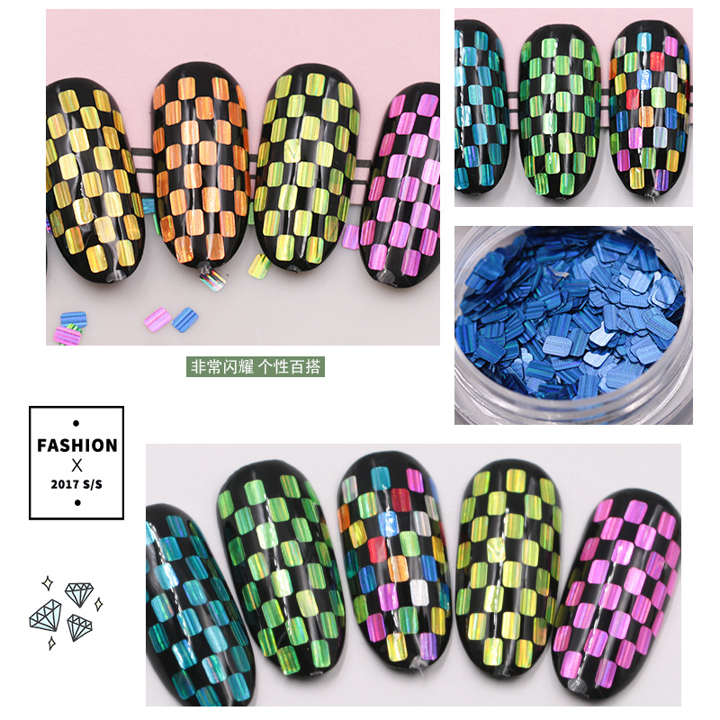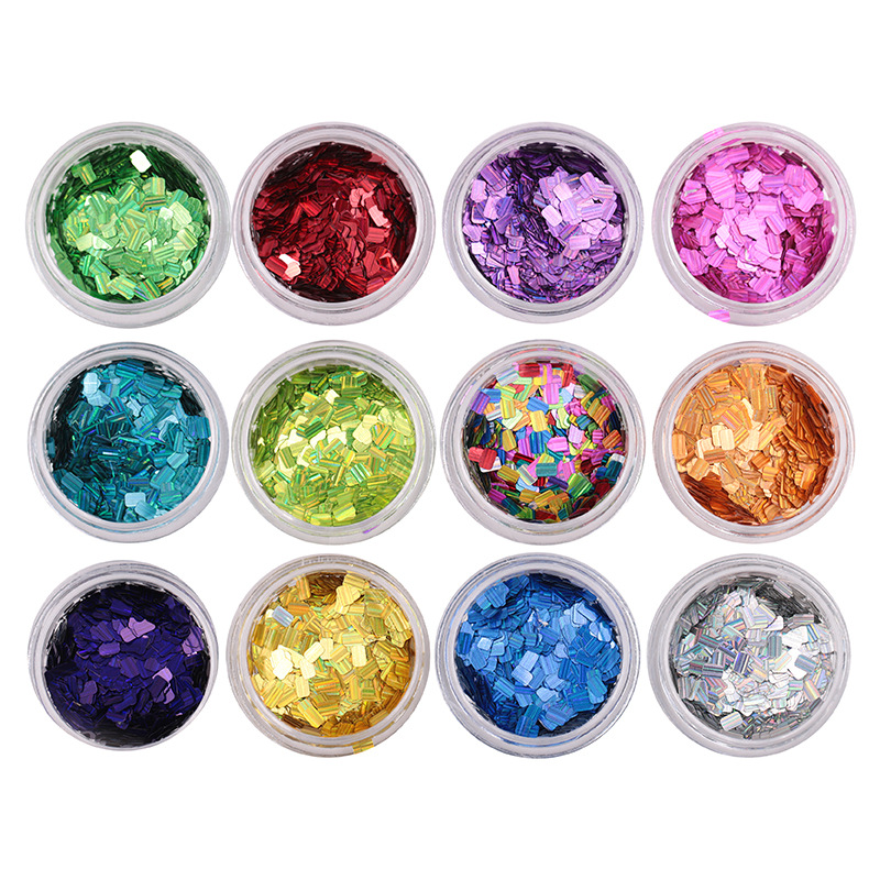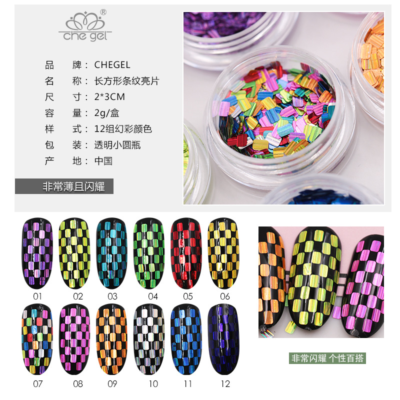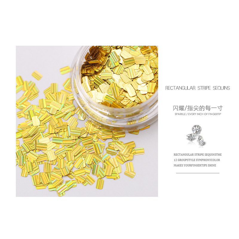 Calcomanías de uñas en forma de rectángulo con brillo láser y rayas